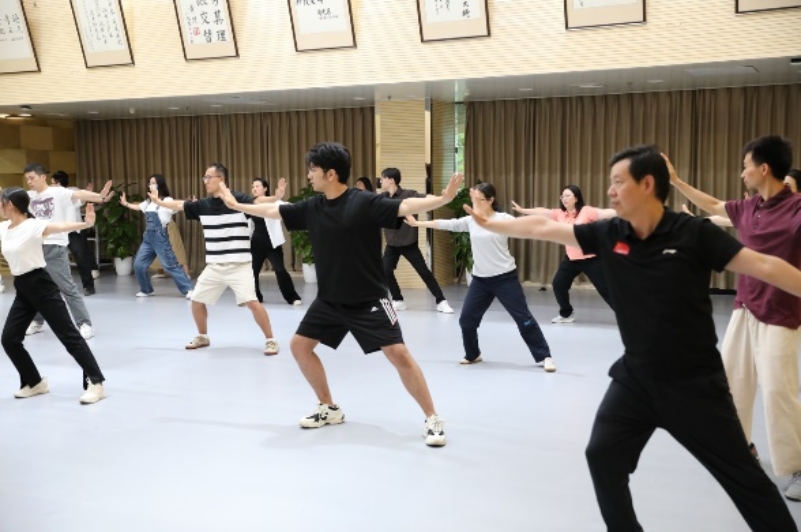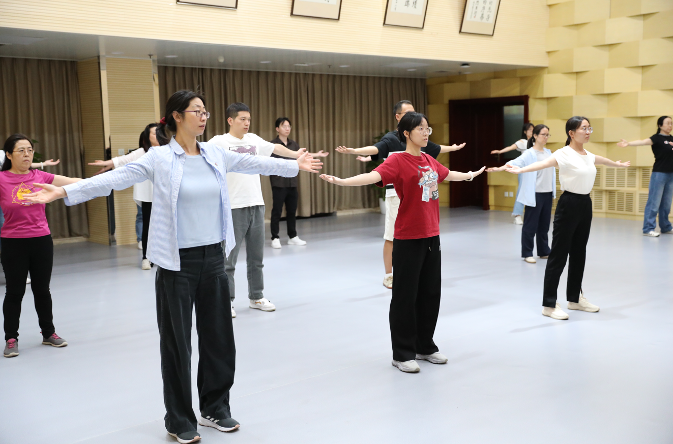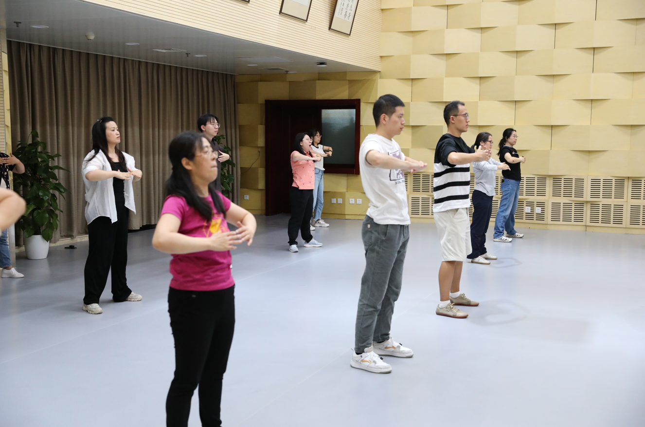 工会特邀北京大学体教部党委副书记、北京大学武术研究中心主任王东敏老师莅临我院,为大家讲授健身气功八段,以古风雅韵,共绘师恩长卷。党委副书记刘军华、张舒出席,共计40余位教职员工及学生参与活动。
