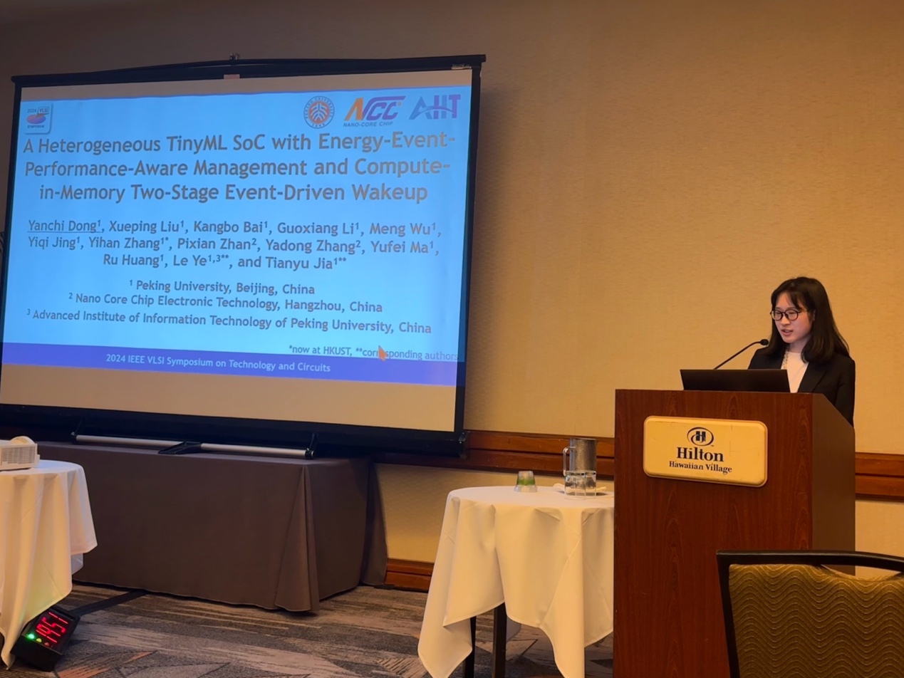 该工作以“A Heterogeneous TinyML SoC with Energy-Event-Performance-AwareManagement and Compute-in-Memory Two-Stage Event-Driven Wakeup”为题发表,文章第一作者是北京大学博士生董彦池,通讯作者贾天宇研究员和叶乐教授。