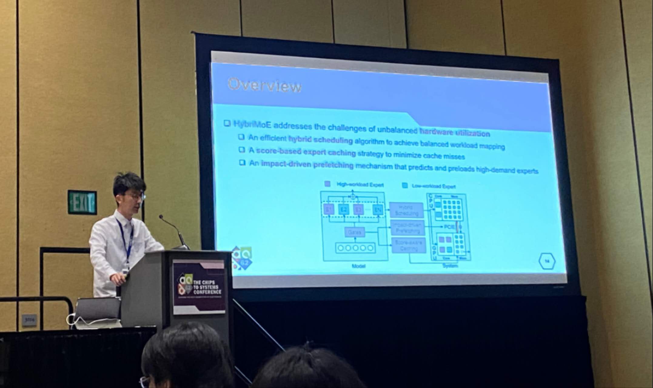混合专家模型(Mixture of Experts,MoE)已经成为了大语言模型的主流架构,但在边缘端设备上部署时面临权重存储需求过高的问题,需要将专家权重卸载至更低级存储,从而产生巨大的数据传输开销。部分工作尝试构建CPU-GPU协同的异构系统,使用CPU进行部分计算,降低模型权重加载到GPU上的传输开销。然而,现有的方法采用了固定的映射模式,在面对具有高度不稳定性的专家激活时,存在任务分配不均资源利用率较低的问题。针对这一挑战,李萌研究员团队提出了一种名为HybriMoE的CPU-GPU混合推理框架。HybriMoE框架通过三个核心技术创新解决了MoE推理过程中激活模式不稳定、负载分配不均的问题:(1)动态层内调度策略,有效平衡CPU和GPU的负载;(2)基于影响驱动的层间预取算法,优先预加载后续层中预期带来较大效益的专家;(3)基于专家评分的缓存管理策略,减少专家激活不稳定性带来的缓存未命中。实验结果表明,相较于现有最先进的混合推理框架,HybriMoE在预填充阶段平均获得了1.33倍的速度提升,在解码阶段则达到1.70倍的提升。该工作以《HybriMoE: Hybrid CPU-GPU Scheduling and Cache Management for Efficient MoE Inference》为题发表(北京大学博士生仲书璋为第一作者,李萌研究员为通讯作者)。