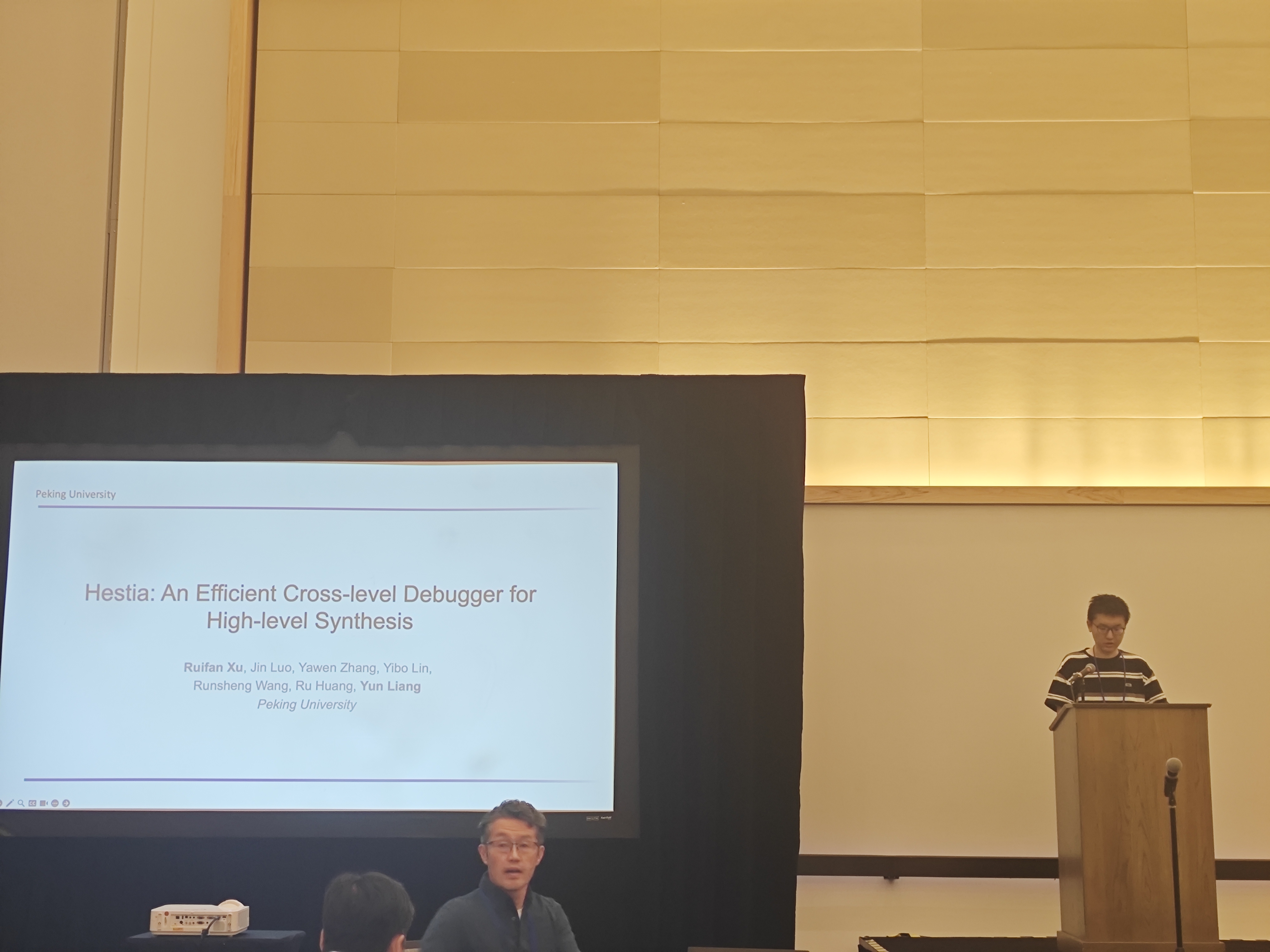 高层次综合(HLS)通过自动将高层次描述转换为寄存器传输级(RTL)设计,为硬件设计提供了软件级的设计机会。然而,HLS编译器往往被视为复杂的黑盒过程,缺乏对设计者的透明度,进而影响调试过程。程序员通常依赖于仿真HLS设计,以理解生成的硬件行为。RTL仿真作为主流的硬件调试方法,在应用于HLS设计时耗时长且细节过多。而软件级仿真虽快速,但无法模拟硬件特有的细节。调试难题的核心在于软件描述与RTL实现之间的语义差异。为应对这一挑战,梁云团队提出了名为Hestia的高效跨层调试器,使得HLS设计的多层级调试成为可能。Hestia提供了多层级解释器,帮助减少硬件细节负担并降低时间成本,从而在HLS流程中调试各种问题。通过跨层级的等效映射,Hestia便于定位并识别错误,提供多种粒度的断点与单步调试。该工作从仿真效率、调试能力和可扩展性三个方面验证了Hestia的有效性。实验结果表明,Hestia相比传统的RTL仿真和现有方法,在仿真速度上实现了显著提升。该工作以《Hestia: An Efficient Cross-level Debugger forHigh-level Synthesis》为题发表(博士生徐瑞帆为第一作者,梁云教授为通讯作者)。