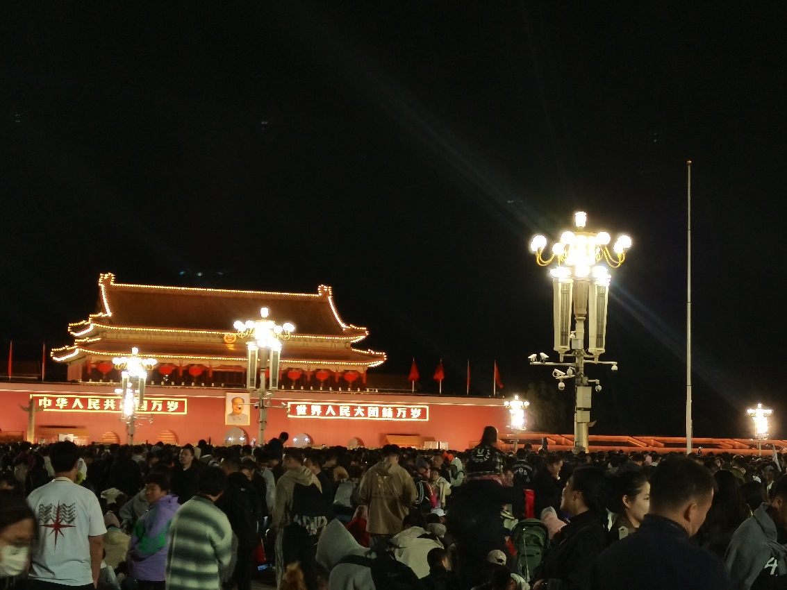 这是我第一次在天安门广场上观看升旗仪式,而且还是在国庆节这极具意义的一天。虽然北京的秋夜十分寒冷,但在现场热烈的氛围和同学们的陪伴下,几个小时的等待时间很快就过去。在国旗迎着朝阳高高升起、和平鸽在广场上空放飞的那一刻,一股强烈的自豪感和使命感油然而生。青年兴则国家兴,我将继续努力,将个人理想追求融入党和国家的事业之中。