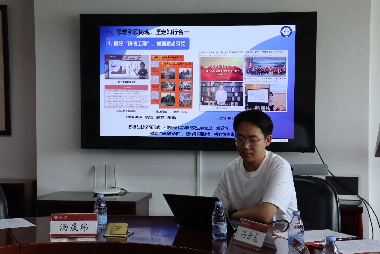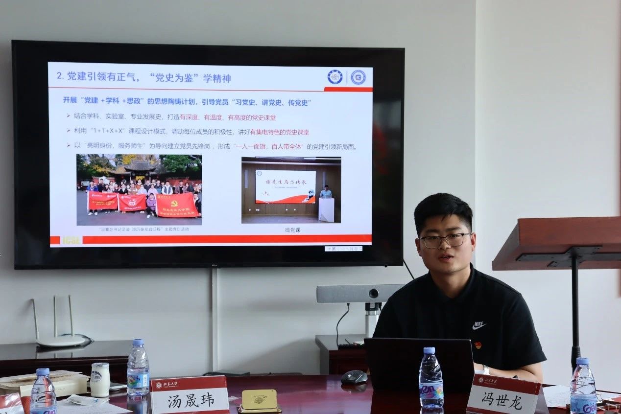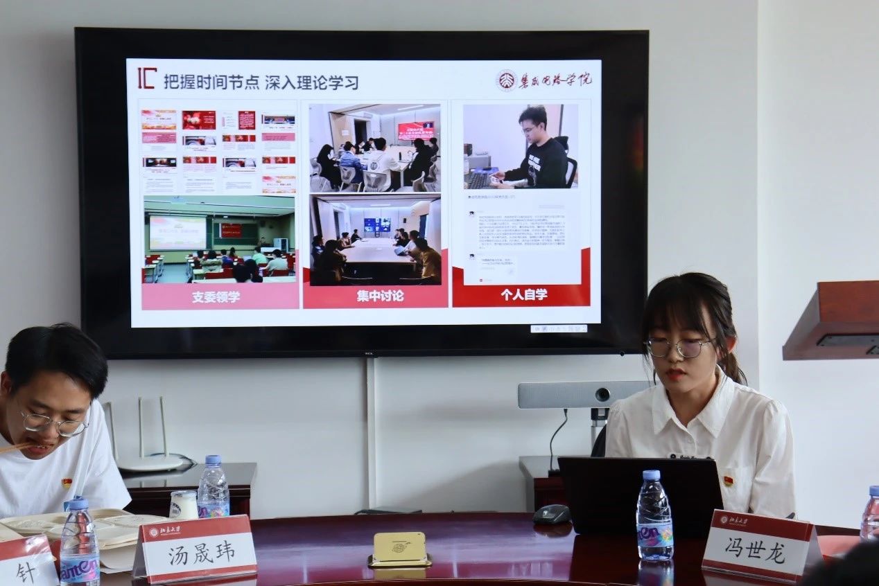 在团学工作方面的创新做法,包括开展主题团日活动、组织志愿服务项目等,旨在培养学生的社会责任感和团队协作能力。电子科技大学潘思怡以“强自主创新之芯,铸集成电路之魂”为题,详细介绍了作为本科生的科创工作探索。学生党支书代表冯世龙、郭欣蕊同学充分分享了两院在在党支部建设工作中的经验和做法,强调了党支部在学生思想政治教育中的战斗堡垒作用,并分享了如何通过党支部活动提升学生的组织能力和团队协作精神。
