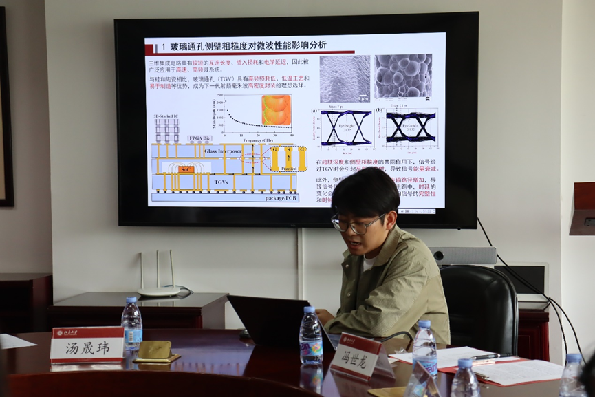在研究生科研分享环节,方针和李立业两位博士生分别就各自在集成电路领域的研究进展进行了精彩的汇报。方针介绍了他在玻璃基三维集成电路中TGVs侧壁粗糙度微波性能分析、建模和优化,李立业则分享了他在光学超表面方向的研究心得和个人成长经历。两位博士生的汇报,充分展现了青年科研人员的学术风采和创新精神。