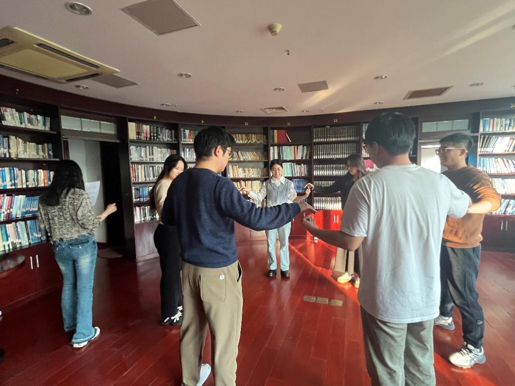 活动开始之初,为更好地活跃气氛,老师带领大家进行破冰活动——“抓手指”。所有同学需要围成一个圈,团辅老师会念一则故事,当触发关键词时,要求同学们同时抓住别人的手指并躲开另一个人的抓握。