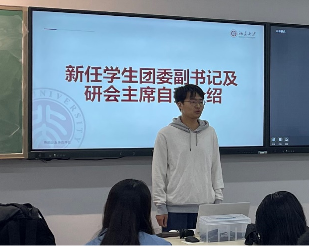 组织部部长陈艺和刘乃齐介绍了部门负责的建设基层团组织、监督青年大学习、组织先进思想学习、对接党支部协调开展推优入党工作、以及完成“芯”学者说和协同其他部门工作。