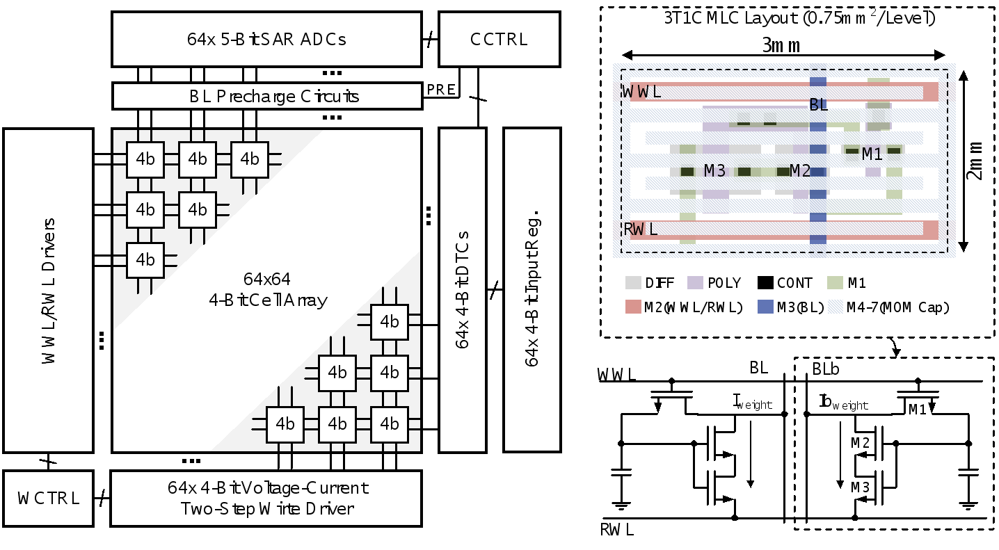 该工作以A Calibration-Free 15-level/Cell eDRAM Computing-in-Memory Macro with 3T1C Current-Programmed Dynamic-Cascoded MLC achieving 233-to-304-TOPS/W 4b MAC为题,发表于今年CICC,文章的第一作者是香港六合彩玄机 博士后宋嘉豪,文章的通讯作者是唐希源研究员和王源教授。