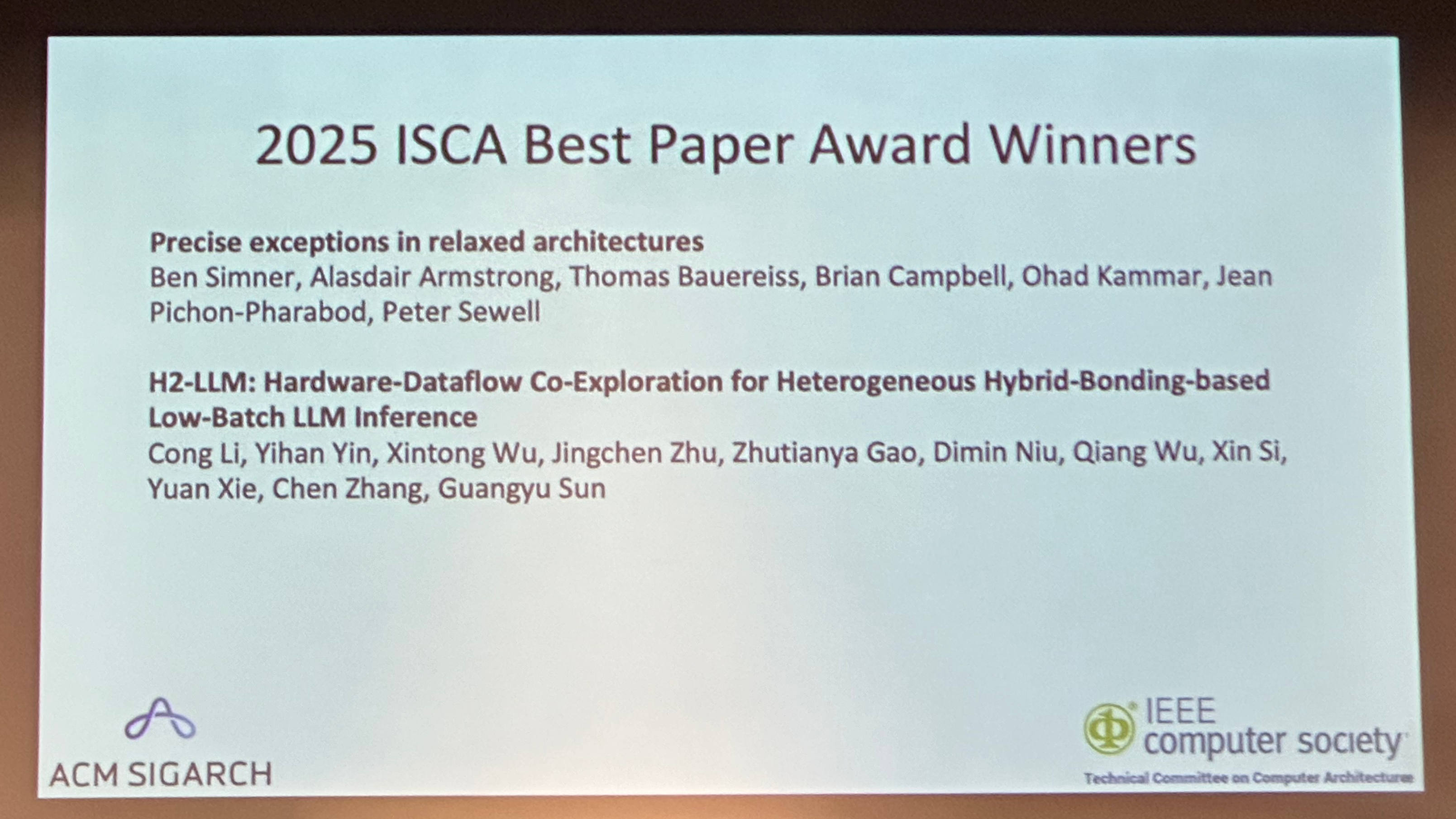 该研究由北京大学孙广宇团队与上海交通大学张宸助理教授团队、东南大学司鑫副教授、后摩智能科技有限公司及阿里巴巴达摩院共同完成,是典型的以实际需求为导向的产学研合作成果。相关成果以《H2-LLM: Hardware-Dataflow Co-Exploration for Heterogeneous Hybrid-Bonding-based Low-Batch LLM Inference》为题发表在第52届计算机体系结构国际研讨会(ISCA),博士生李聪为第一作者。该成果获得本届ISCA最佳论文奖,这是国内学术机构首次在ISCA会议上获此殊荣。