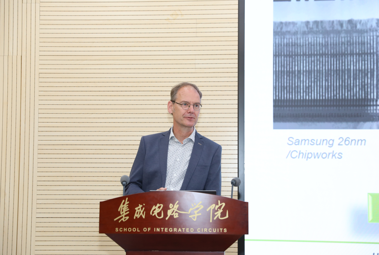 讲座中,Uwe Schroeder博士首先回顾了2006年首次发现掺杂HfO2的铁电性这一里程碑式的突破,这一发现为铁电存储器件的材料选择提供了一个CMOS工艺兼容的完美替代方案,改变了铁电存储领域的研究格局。随后,Uwe Schroeder博士从铁电性的关键影响因素讲起,深入剖析了薄膜中的应力机制,详细讲解了多种因素如何在工艺过程中对薄膜施加应力,而这些应力又是如何影响铁电相的形成过程,同时,材料的相分布反过来会在器件的循环工作过程中影响内部应力状态,揭示了两者之间复杂的相互作用关系。紧接着,Uwe Schroeder博士系统介绍了基于氧化铪的三种存储器件——FeRAM、FTJ和FeFET,阐述了它们各自的工作原理、发展趋势以及当前面临的技术挑战。最后,Uwe Schroeder博士还展示了基于铁电器件的新型应用探索,尤其是在实现高能效神经形态计算领域所展现出的潜力,为在场师生描绘了氧化铪基铁电器件未来的广阔应用前景。