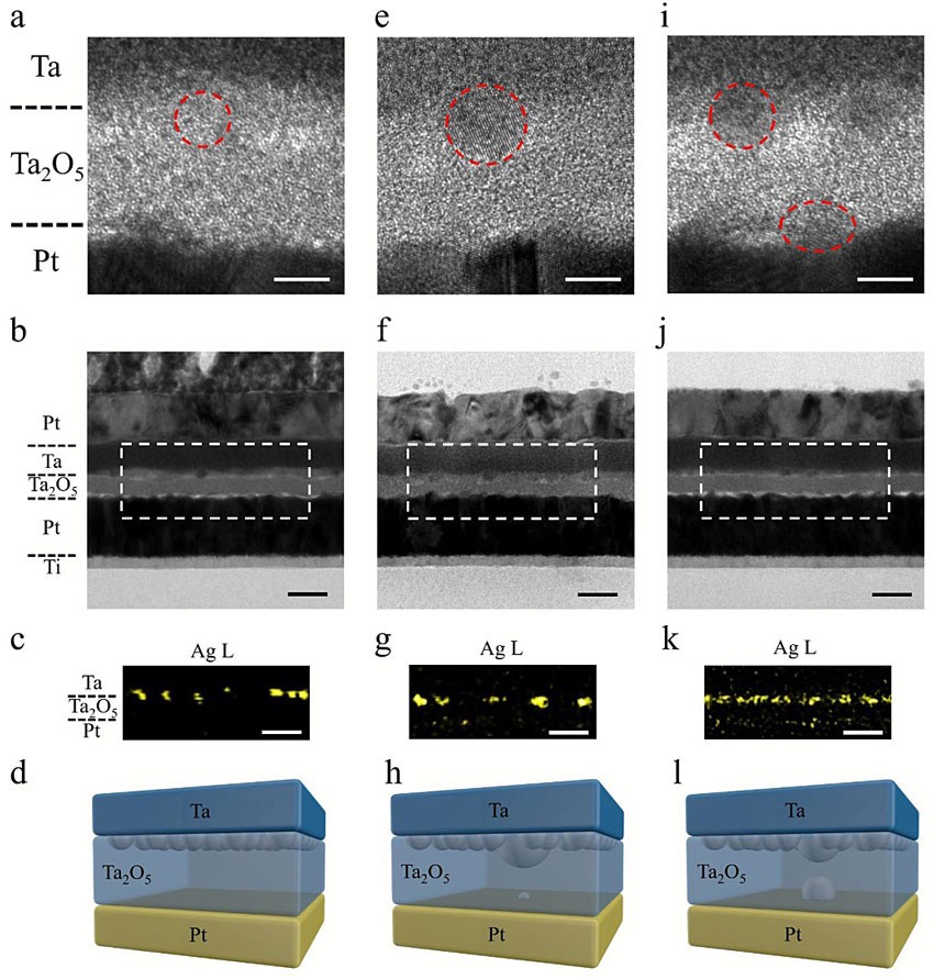 “Ta/Ag-NCs/Ta2O5/Pt/Ti”器件结构及STP/LTP测试