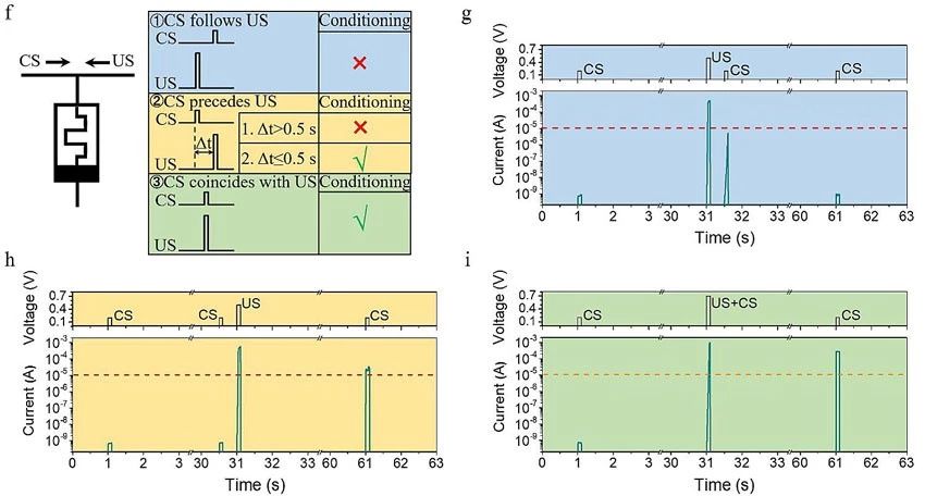 这种人工双端忆阻突触还可以执行更加复杂的功能,包括再可塑性、异步经典条件反射和脉冲时间依赖可塑性(STDP)。而且这些功能的实现,都是基于器件中Ag纳米团簇的竞争性电化学和热力学过程,而无需刻意设计编程条件。