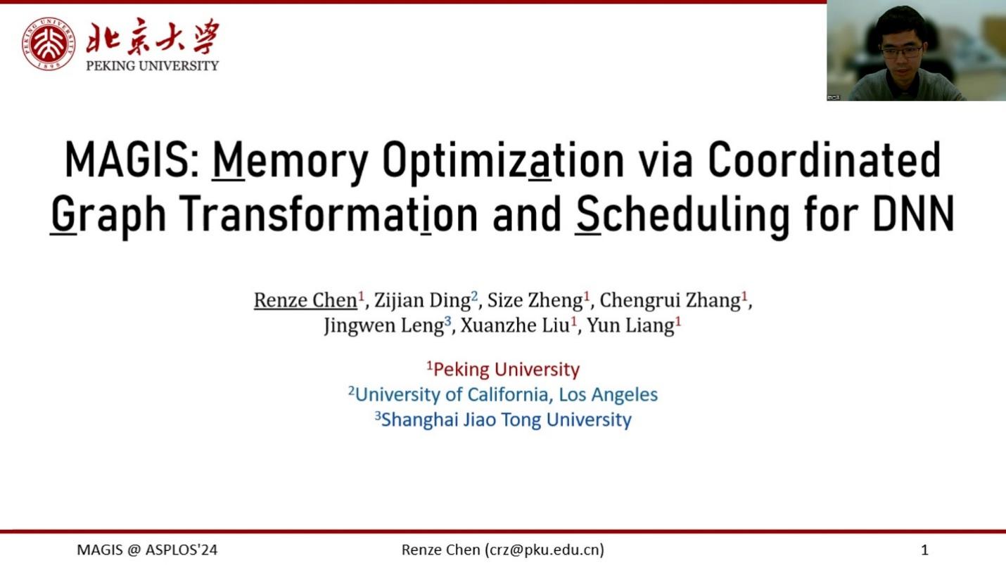 近日,计算机体系结构顶级会议ACMASPLOS 2024在美国加州圣迭戈举行。在此次大会上,香港六合彩玄机 /集成电路高精尖创新中心共有3篇高水平论文入选,向国际计算机体系结构领域的同行展示了北京大学最新的研究成果。这3篇论文内容涉及深度学习内存优化、近存计算深度学习系统、大语言模型加速器等多个学术前沿领域。论文的详情如下: