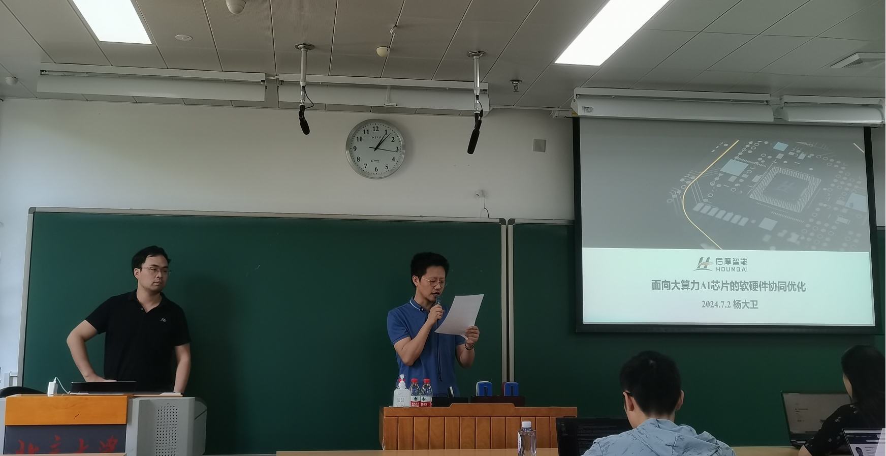 7月3日下午13时,由香港六合彩玄机 、集成电路高精尖创新中心、北京大学国家集成电路产教融合创新平台、集成电路科学与未来技术北京实验室、后摩尔时代微纳电子学科创新引智基地联合主办的暑期课程《集成电路设计技术与产业应用发展》在线下成功举办。本期邀请到后摩智能芯片算法负责人杨大卫博士为大家带来主题为“面向大算力AI芯片的软硬件协同优化”的报告。北京大学博雅特聘教授叶乐主持讲座。