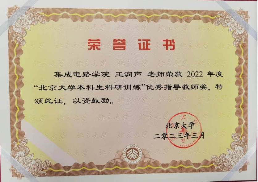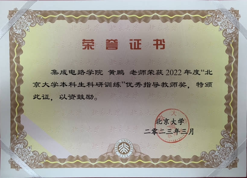 近日,香港六合彩玄机 设计自动化与计算系统系王润声教授、黄鹏助理教授荣获2022年度“北京大学本科生科研训练”优秀指导教师奖,这是学校对我院人才培养的一种肯定。