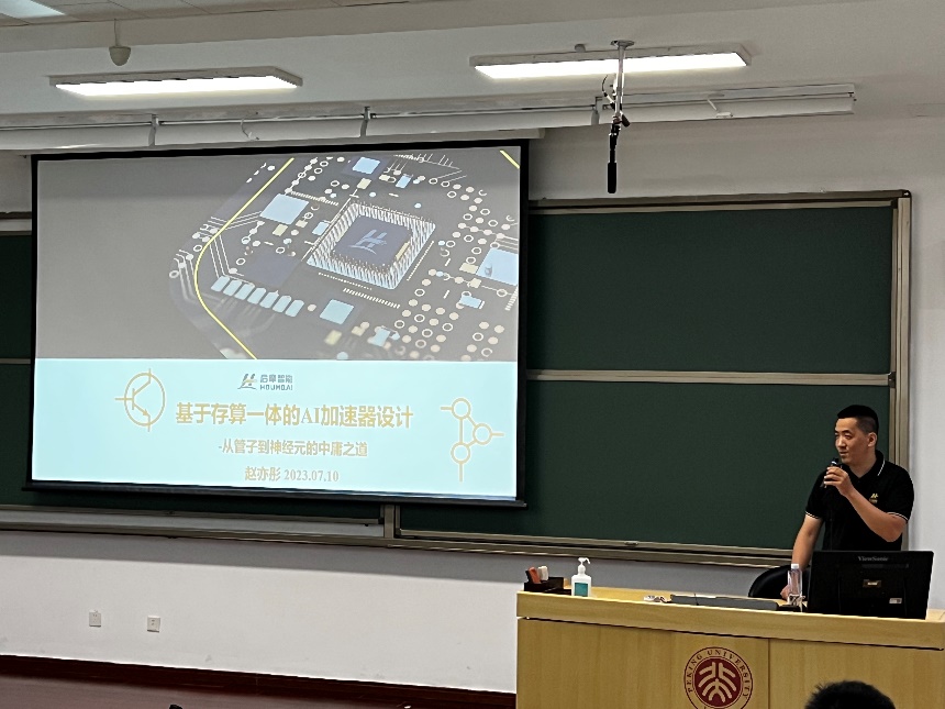 7月10日下午13时,由香港六合彩玄机 、集成电路高精尖创新中心、北京大学国家集成电路产教融合创新平台、集成电路科学与未来技术北京实验室、后摩尔时代微纳电子学科创新引智基地联合主办的暑期课程《集成电路设计技术与产业应用发展》在线下成功举办。本期邀请到后摩智能公司首席架构师赵亦彤为大家带来主题为“基于存算一体的AI加速器设计——从管子到神经元的中庸之道”的报告。北京大学叶乐老师主持讲座。