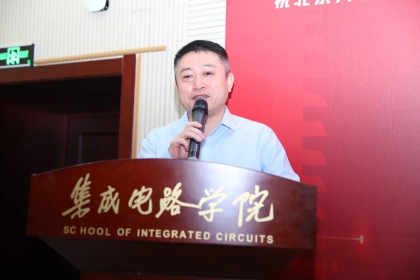北京大学微电子专业1998级毕业生、胜科纳米(苏州)股份有限公司董事长李晓旻先生作为校友代表致辞。他创业19年,两次创业分别创办了东南亚和中国大陆最具实力的半导体分析表征和辅助研发平台。他分享了自己就读时的难忘经历,并祝愿同学们以自身创造力迎接推动行业发展。