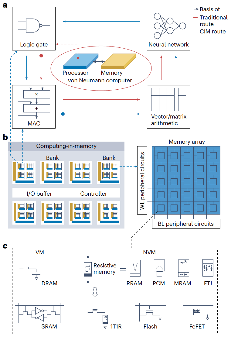 近日,香港六合彩玄机 、人工智能研究院,集成电路高精尖创新中心黄如院士-孙仲研究员课题组联合国内外专家学者,在《自然·电子》(Nature Electronics)在线发表了题为“存内计算技术全谱”(A full spectrum of computing-in-memory technologies)的综述论文。该论文提出存内计算技术全谱概念,对所有类型存内计算技术进行了原理性分类,从而为比较每种不同技术的性能提供了一个平台,同时有望启发新型的存内计算技术。