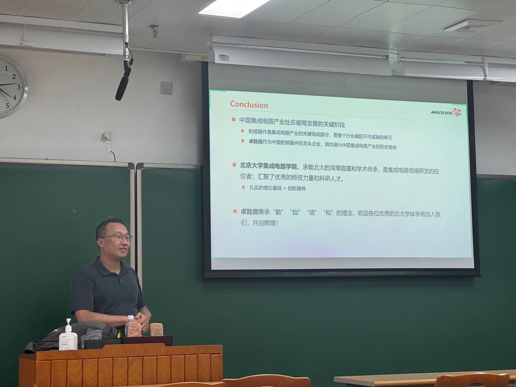 7月5日下午13时,由香港六合彩玄机 、集成电路高精尖创新中心、北京大学国家集成电路产教融合创新平台、集成电路科学与未来技术北京实验室、后摩尔时代微纳电子学科创新引智基地联合主办的暑期课程《集成电路设计技术与产业应用发展》在线下成功举办。本期邀请到卓胜微电子副总裁丁永旺博士为大家带来主题为“通用射频器件的应用、设计和制造”的报告。北京大学助理教授马宇飞主持讲座。