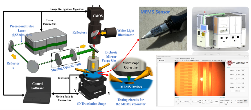 图1. 基于超短脉冲激光的MEMS传感器件修调系统