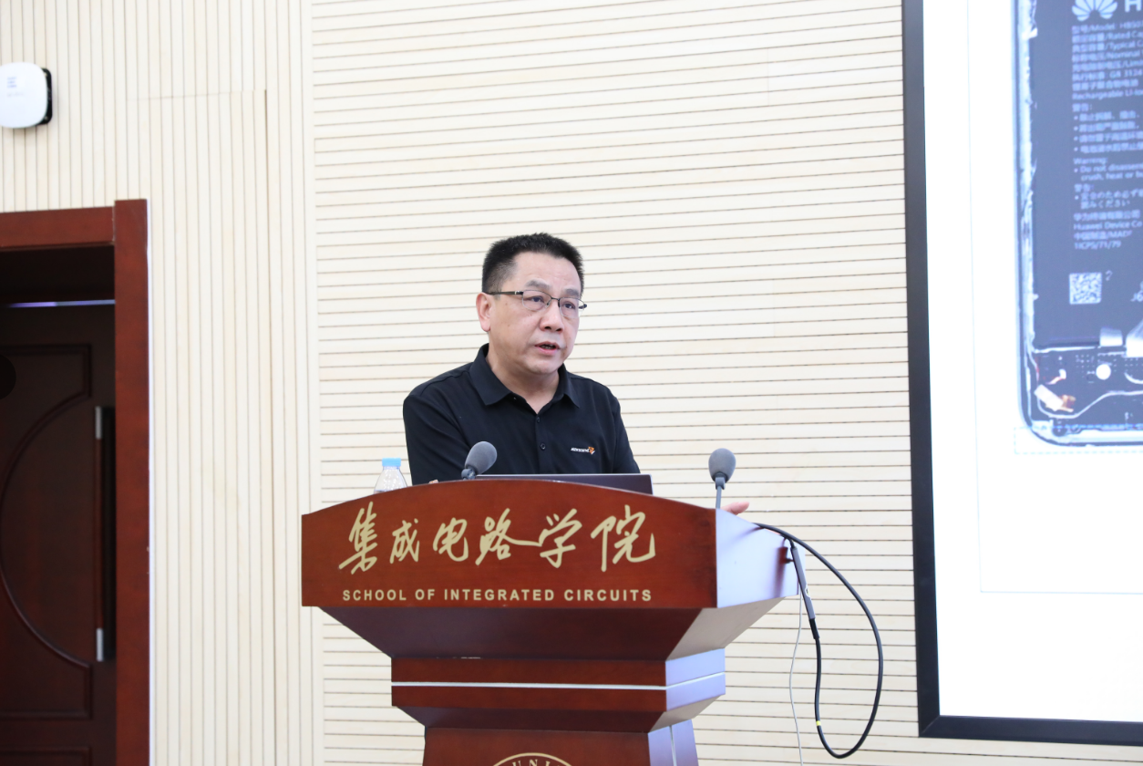向全体新生表示热烈欢迎与诚挚祝贺,回顾了北大集成电路事业的发展历程,展望了国家战略科技的宏大图景,强调同学们正站在科技强国时代使命与个人学术追求交汇的起点上。他勉励大家志存高远、勇于创新、涵养格局,把个人成长融入国家发展大局,勇担科技报国重任。他寄语新生在北大“集成”梦想,于时代“铸芯”前行,不负韶华,奋楫启航。