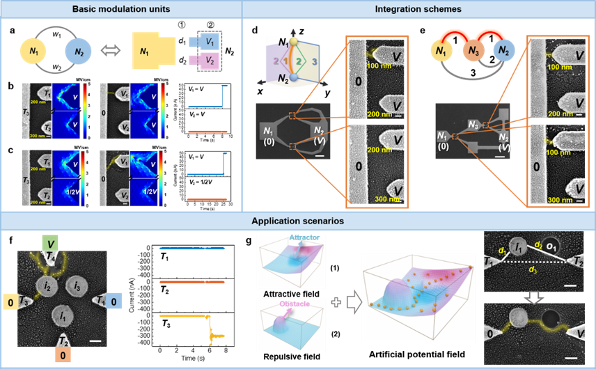 /集成电路高精尖创新中心黄如院士-杨玉超教授课题组从电场调控下导电细丝的生长动力学行为出发,利用忆阻器件自身物理演化规律首次构建了能够高度映射群体智能行为的多智能体自组织演化微观计算系统。在该系统中,大量随机分布的银纳米团簇作为智能体在电场作用下发生自发、动态、实时的...
